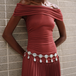 Turn heads with the Lennon Chain Belt! This beautiful gold or silver chain belt with unique drop crystals adds a touch of glamour to any summer look. Show off your style with this eye-catching accessory!