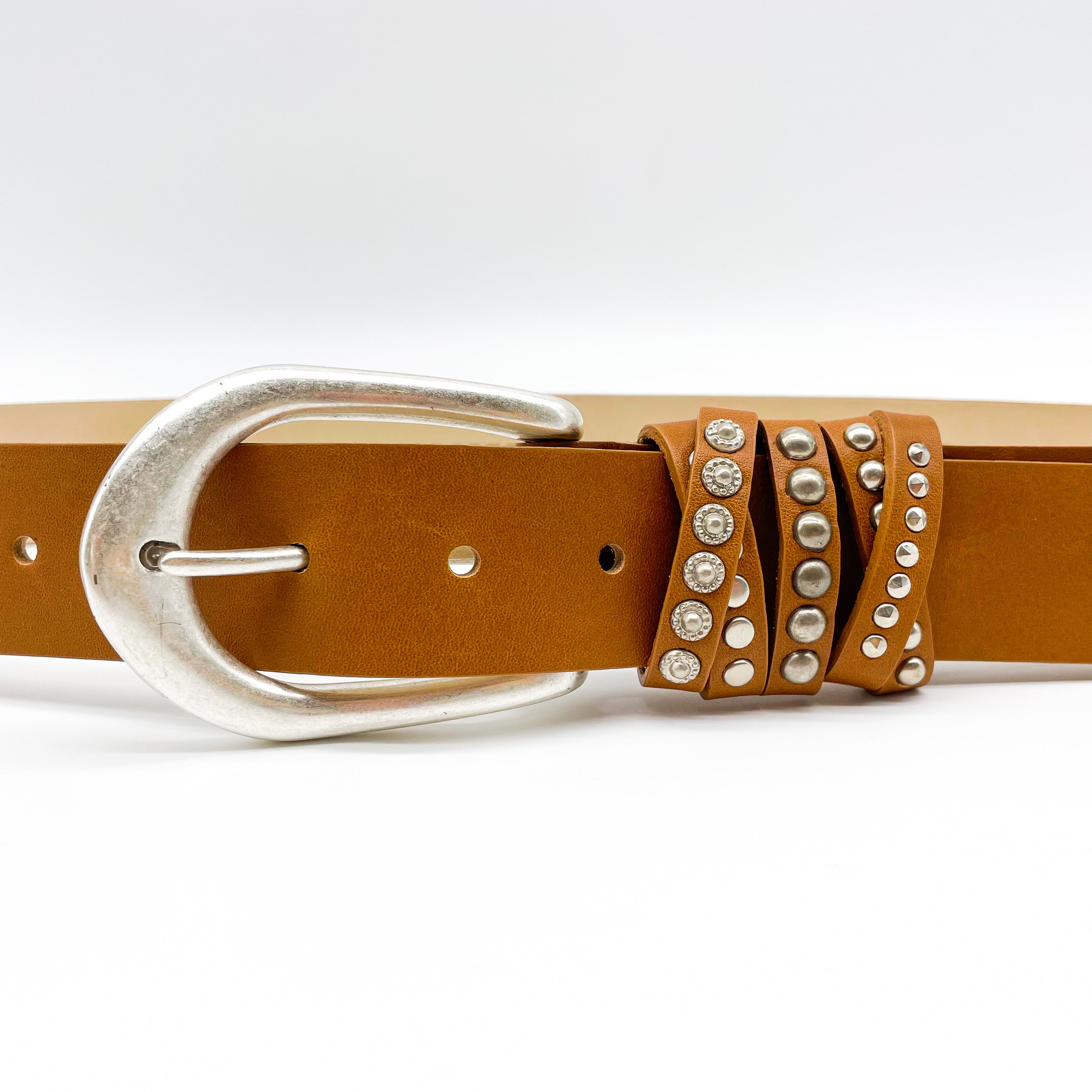 Crista Belt - Brown Studded Loop Silver - Streets Ahead