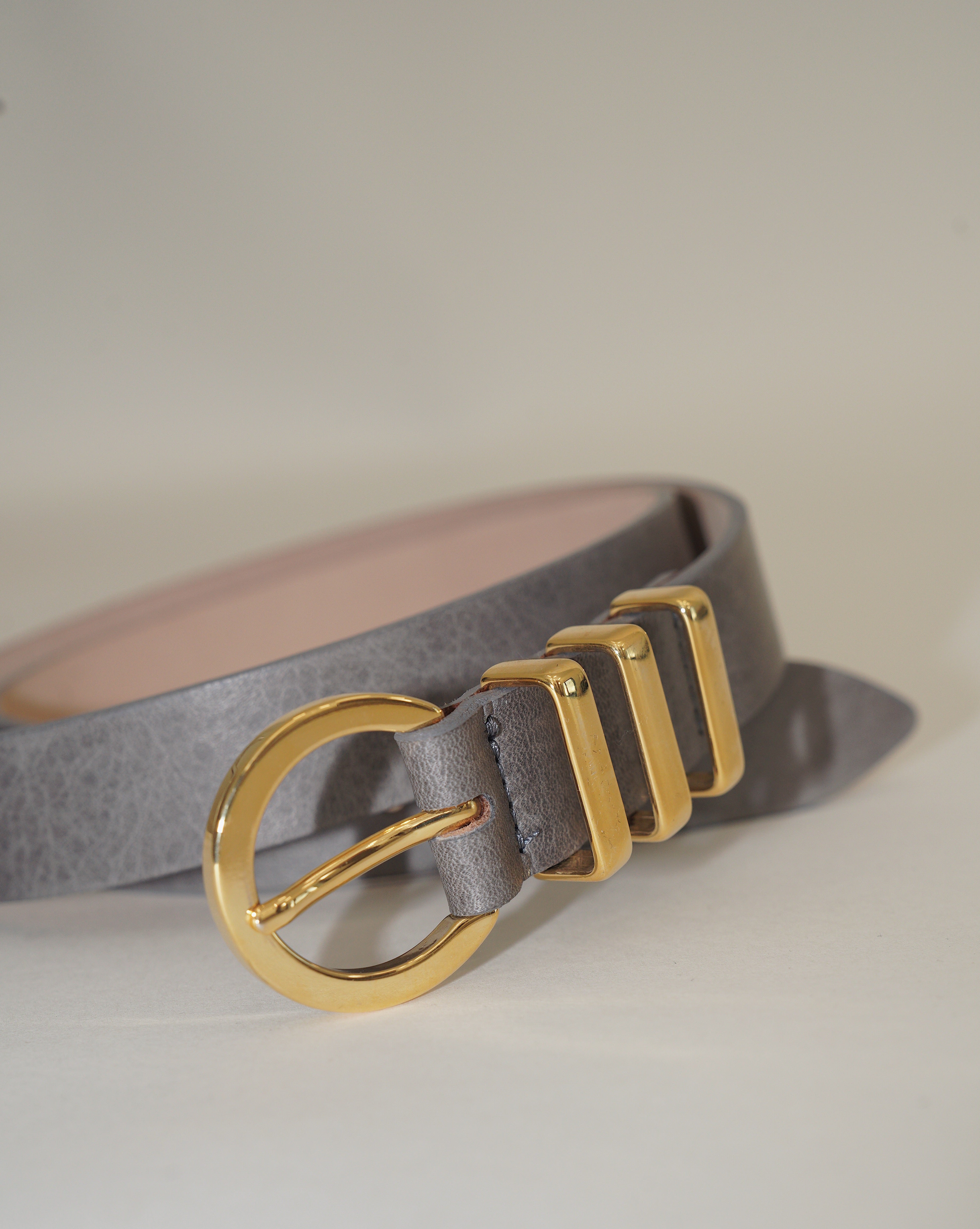 Made from soft gray Italian leather, the Nyx Belt features a rounded 24k gold-plated buckle and a triple-keeper design for a sleek, architectural look. Each belt is cut, assembled, and finished by hand in Los Angeles, California, using the finest Italian-sourced materials and custom hardware designed for lasting wear.