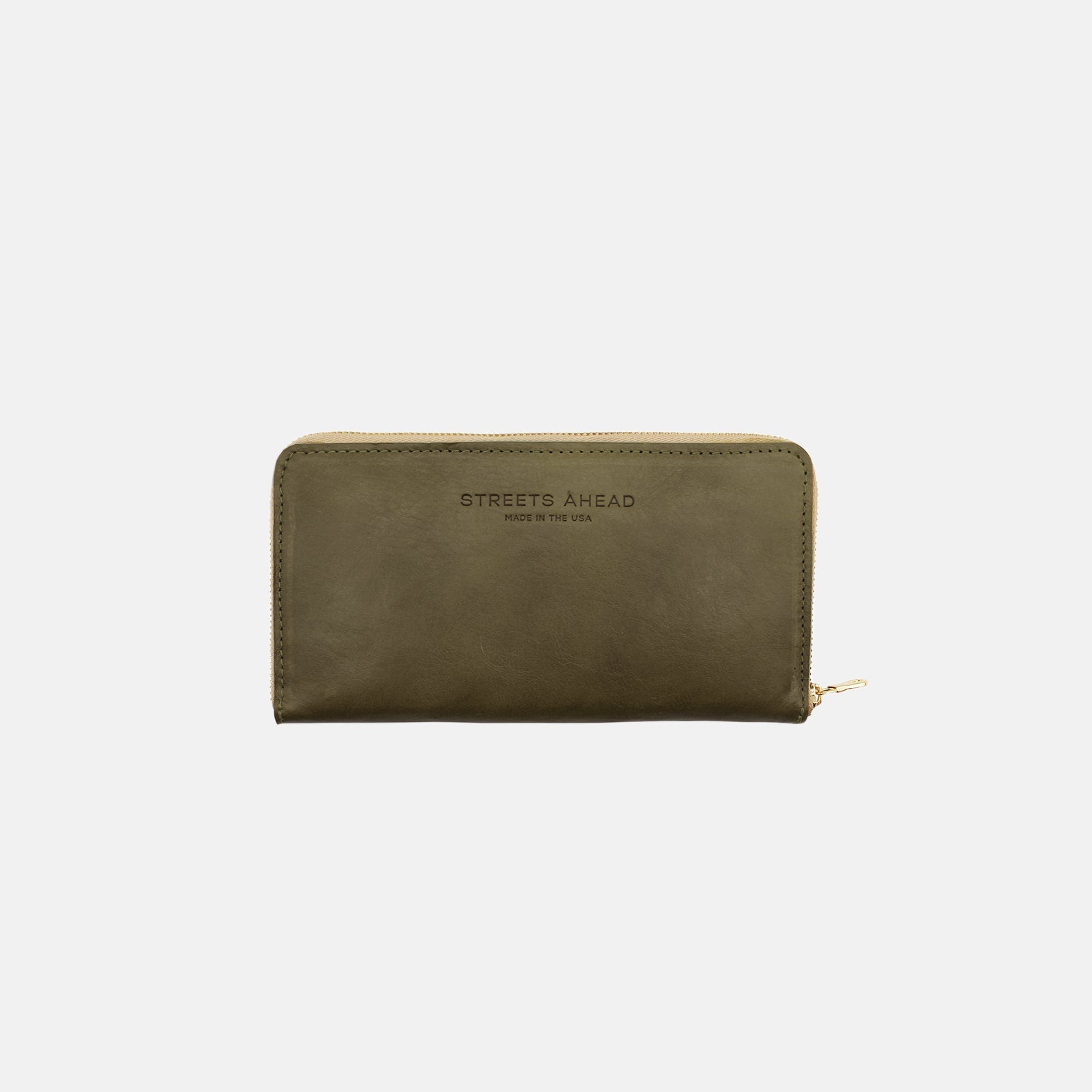 - Gold zipper closure