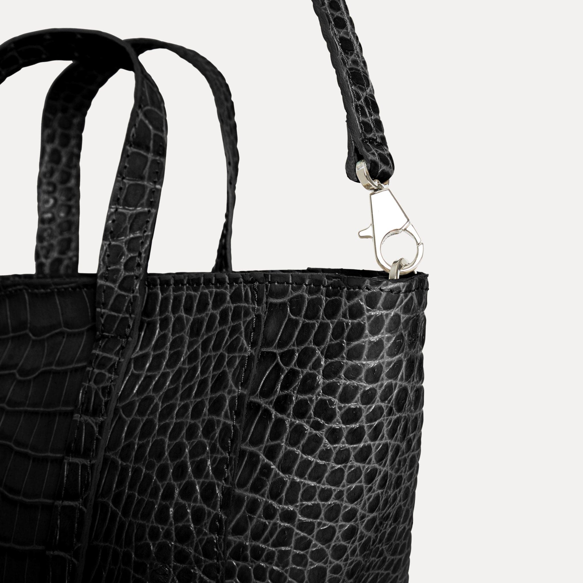 Isla Bag – black minimalist Italian leather handbag with zipper closure and removable crossbody strap, handcrafted in Los Angeles - Streets Ahead